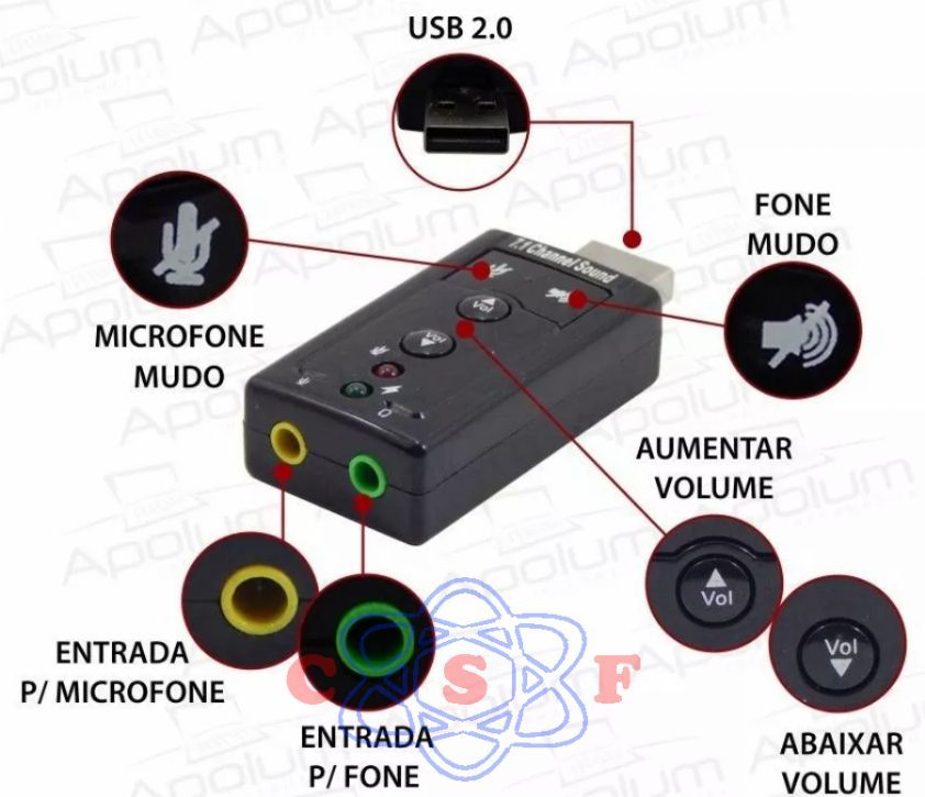 Adaptador Subistitui Placa Som Virtual Usb Channel 7.1 Canais Sound Driver Marca: exbom Código de barras: 2993501054109