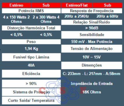 Módulo Amplificador de Potência Alfa Amps AD 600W 4X150W RMS Classe DigitalPotência RMS